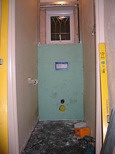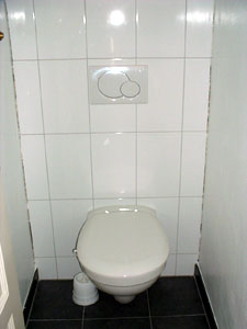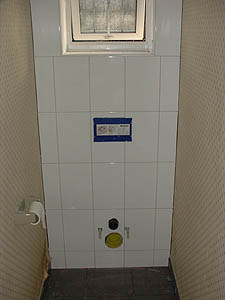 Old existing toilet New wall mounted frame including plaster boards Including tiles Finish excluding the decorating